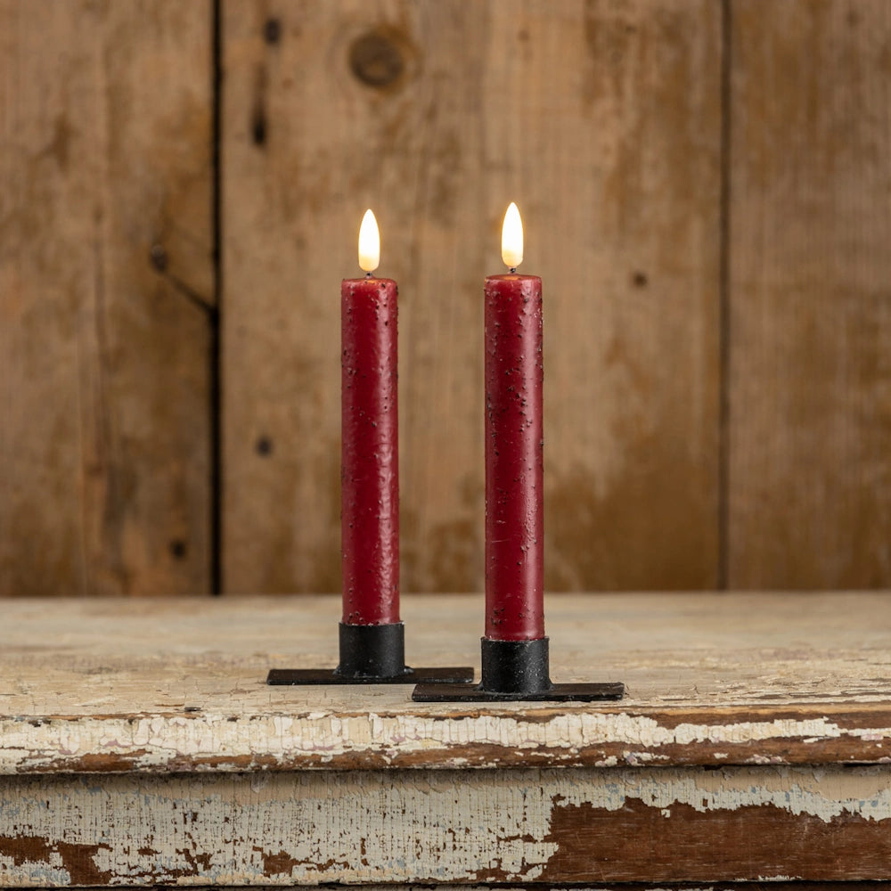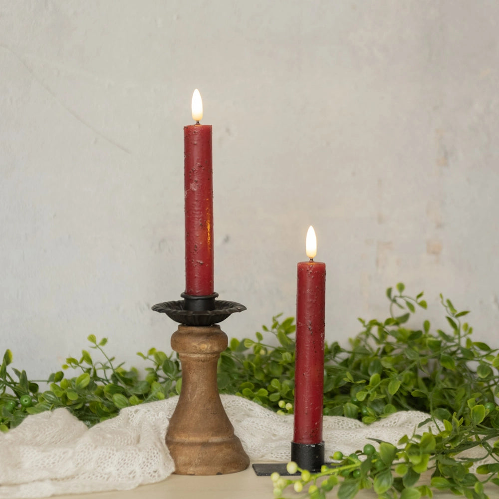 Introducing the Set of 2 - 7.25" 3D Flame Red Taper Candle from Ragon House. These candles are made from plastic and wax, reflecting the brand's love for antiques and vintage-inspired designs.