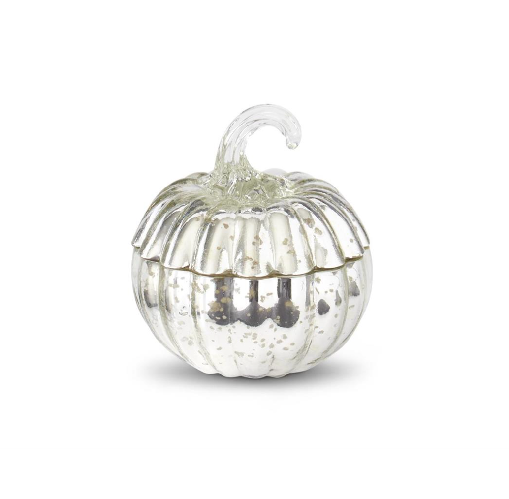 Small Silver Mercury Glass Pumpkin Poured Candle -2 Styles