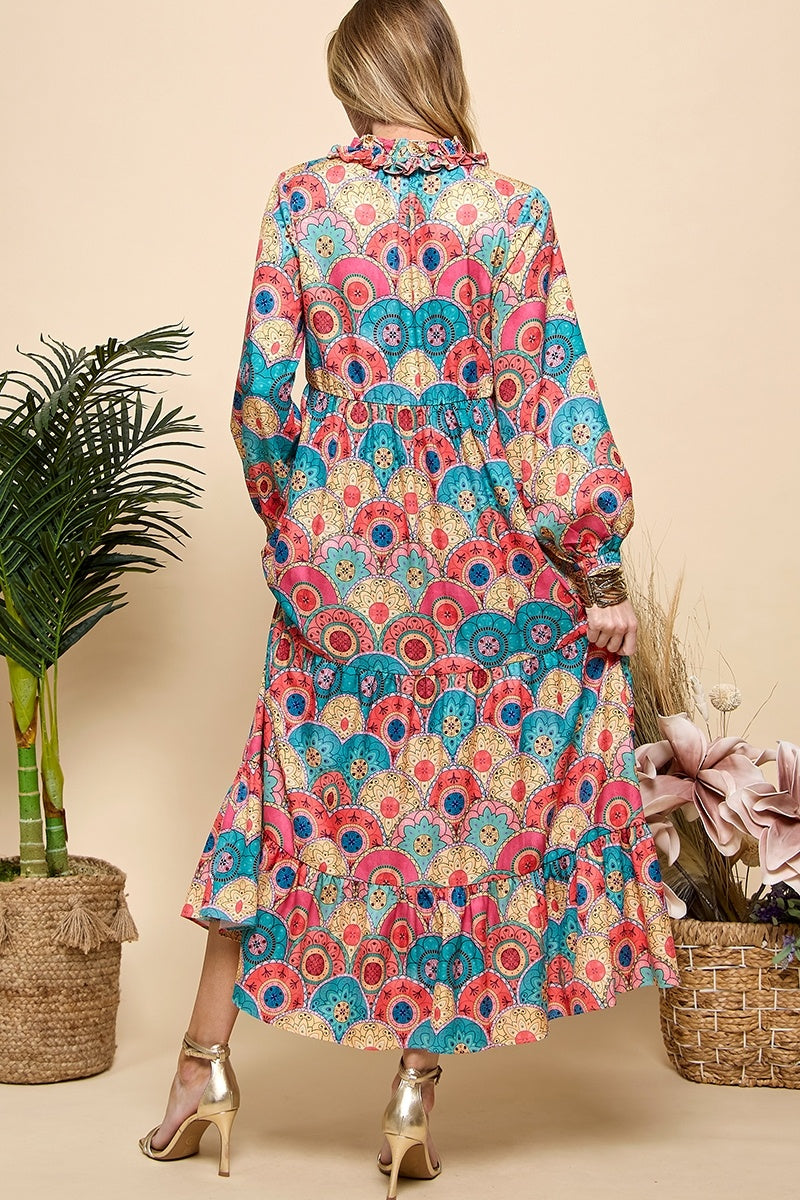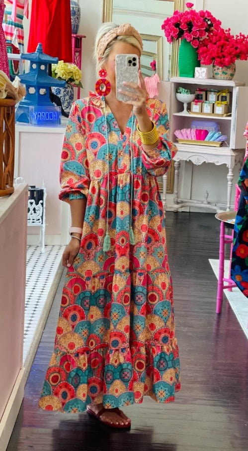 Print Long Sleeve Maxi Dress - it's a total game-changer! This dress is seriously stylish, with long sleeves and a full-length skirt that give it a totally unique look.
