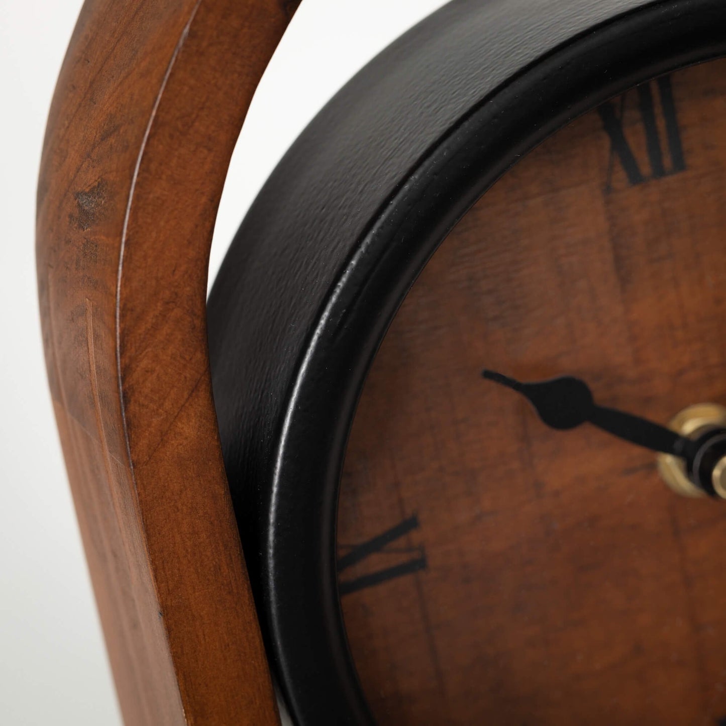 Elevate your space with the Arched Wood Framed Desk Clock, a perfect blend of classic design and functionality. Standing 10.25 inches tall, this elegant clock adds a refined touch to any desk or shelf. Its warm wood frame complements both home and office decor, making it a timeless accessory that keeps you punctual in style.