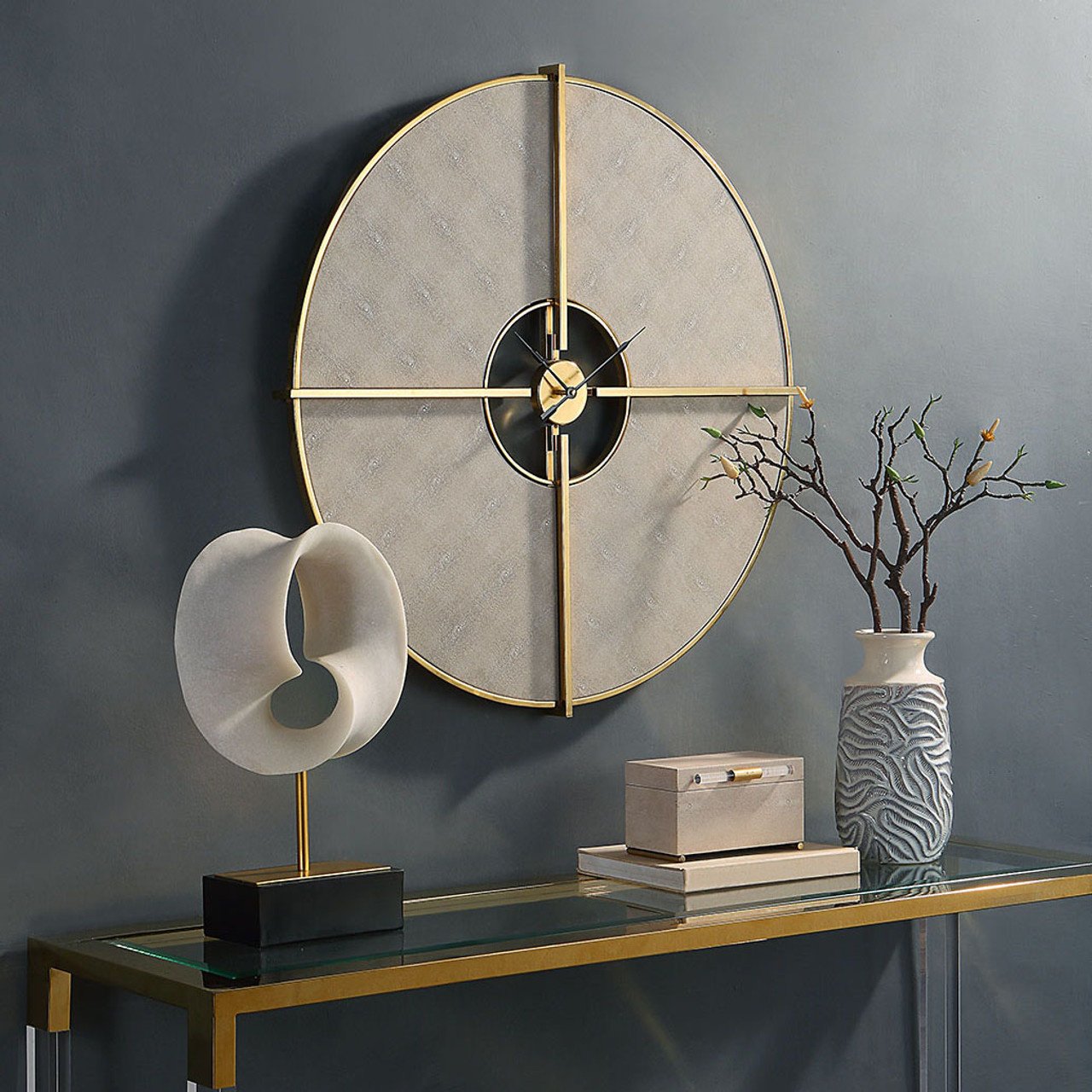 Built with care from sturdy gold-tone iron, the Aurora Wall Clock may be the home accent you're looking for. Its versatile and sophisticated feel come together to create an excellent piece of decor that blends in anywhere.