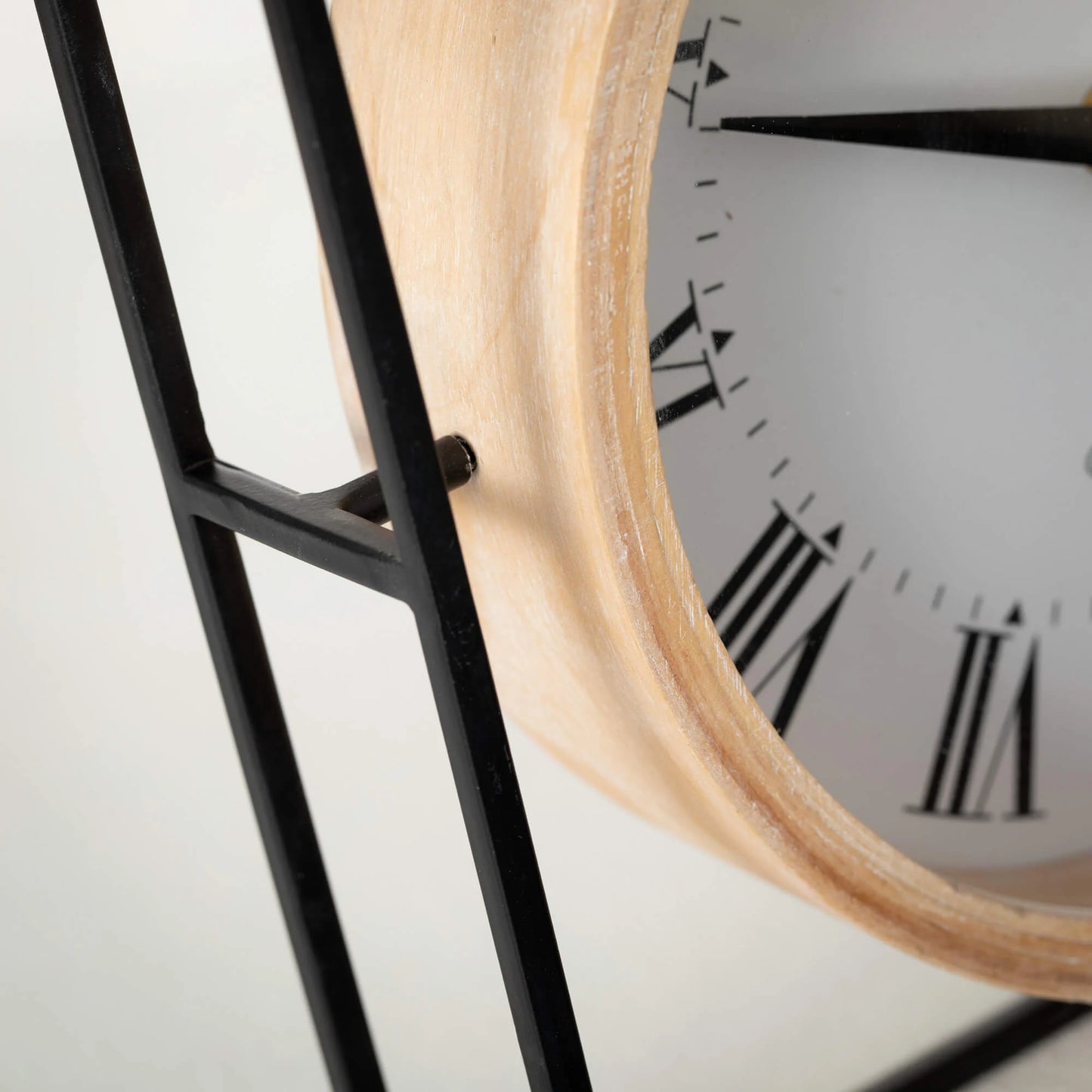 Elevate your workspace with this contemporary, black metal-caged desk clock featuring wood details and a modern feel. The clean lines and minimalistic details are perfect for any style--especially if you're looking for a bold statement.