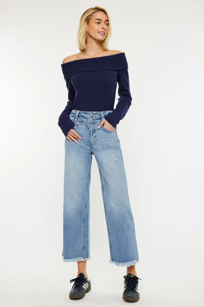 Our Gretchen Ultra High Rise Wide Leg Jeans sit high above the waist for an easy fit that will elongate the legs. The sophisticated wide-leg silhouette that drapes over the body for a relaxed fit.