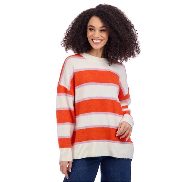 The Sylas Striped Sweater is a stylish and versatile addition to any wardrobe, featuring a classic striped pattern that effortlessly complements any outfit. Crafted from a high-quality blend of 78% Polyester, 19% Acrylic, and 3% Spandex, this sweater offers a comfortable and flexible fit. The acrylic knit construction ensures warmth and durability, making it perfect for cooler weather. Designed with a ribbed neckline, sleeve openings, and hem, it provides a snug and polished look. With a length of approximately 25 inches from shoulder to hem on a size small, it offers a flattering silhouette. Available in three sizes—small, medium, and large—this sweater is ideal for various body types. Whether paired with jeans for a casual day out or dressed up with a skirt for a more sophisticated look, the Sylas Striped Sweater is a must-have piece for any fashion-forward individual.