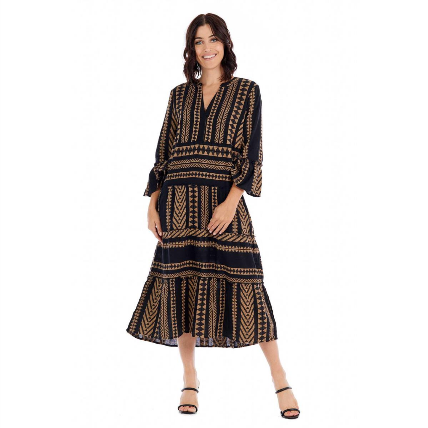 Black Mari Yarn-Dye Midi Dress