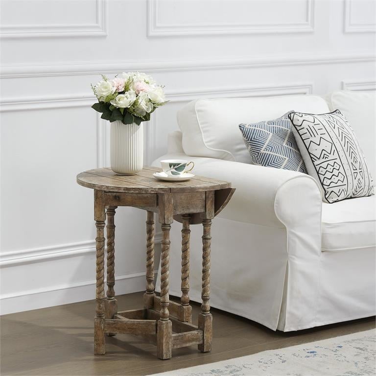 Josie Vintage Brown Rub Drop Leaf Accent Table