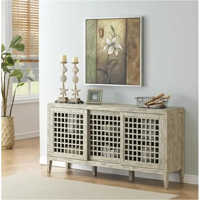 Add Textured Ivory 4 Door Media Credenza to the cart