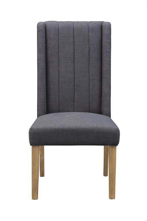 Perched atop Toffee Brown legs and upholstered in a classic dark charcoal grey with single welt trim and channel stitching, you get that custom tailored appearance that you so adore.