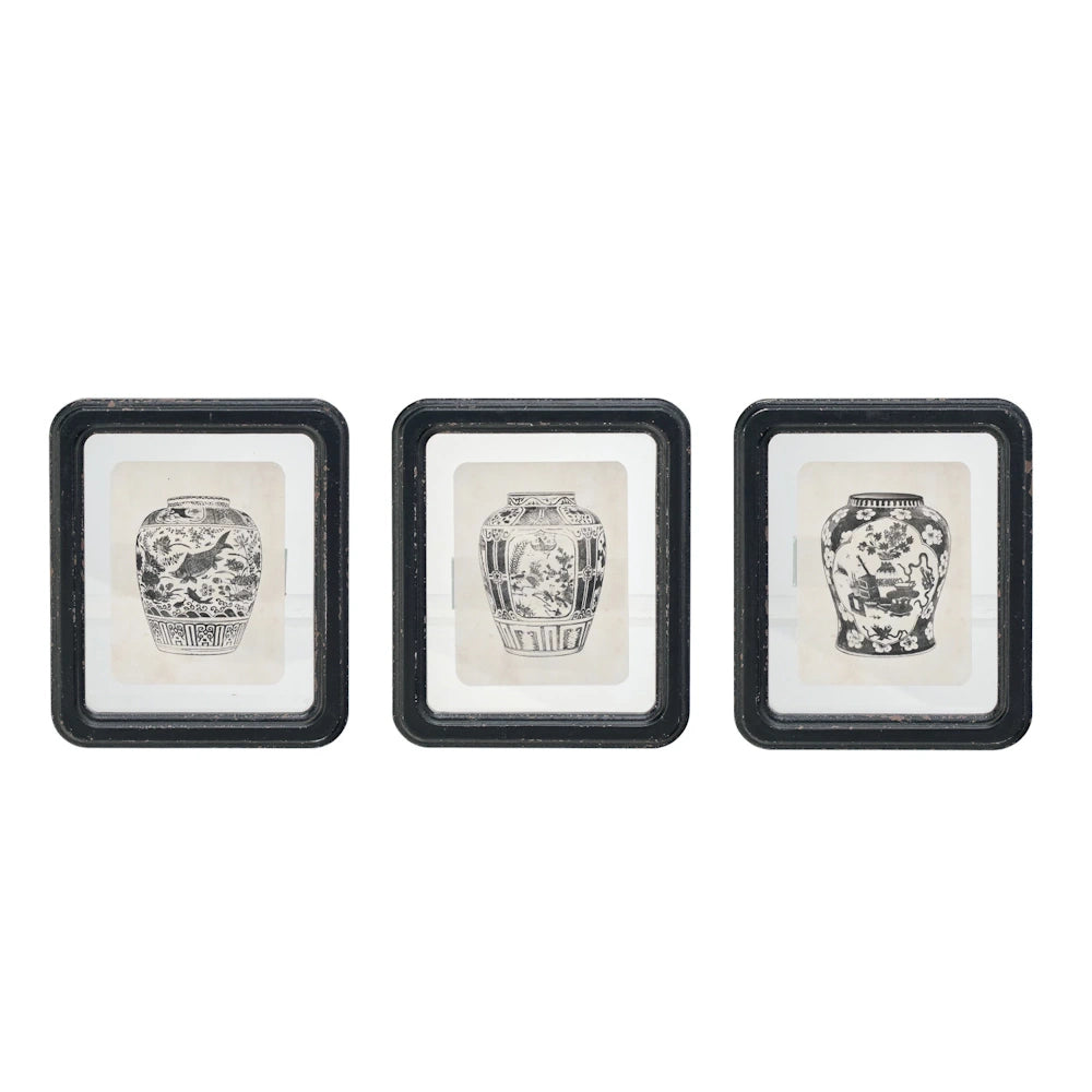 Wood Framed Glass Wall Decor with Floating Vase Print