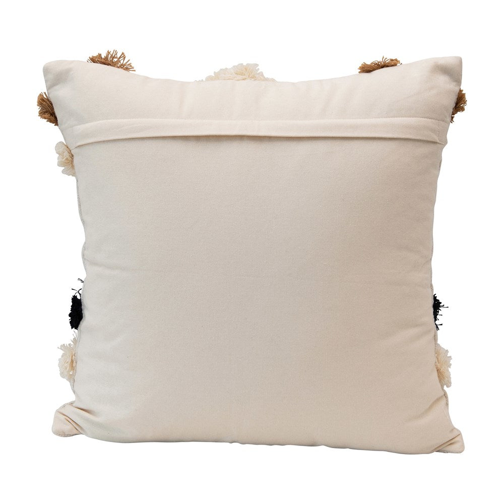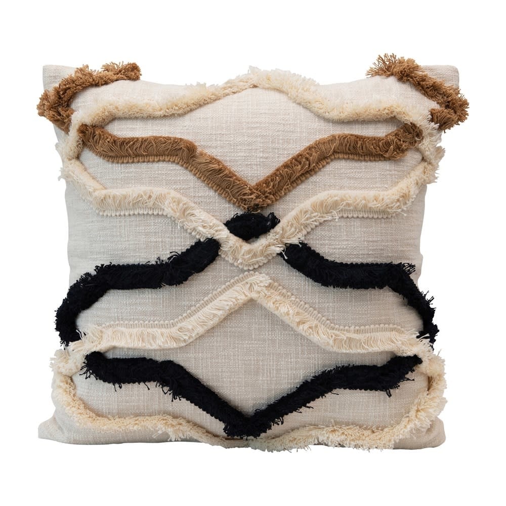 20" Square Cotton Lumbar Pillow w/ Appliqued Fringe Pattern, Multi Color