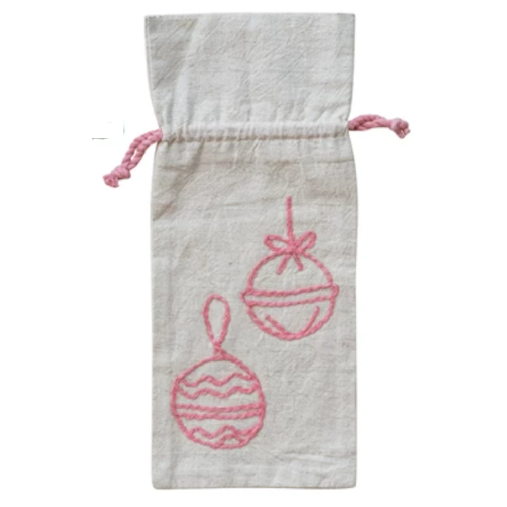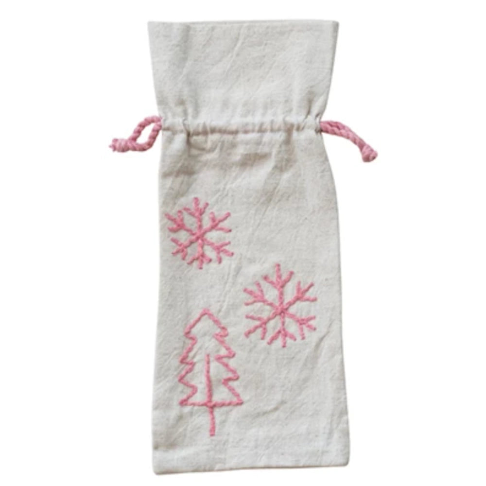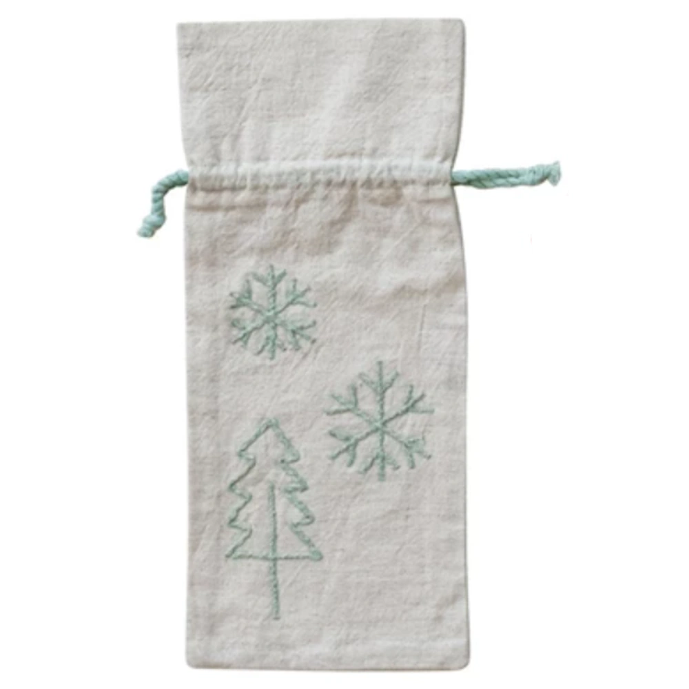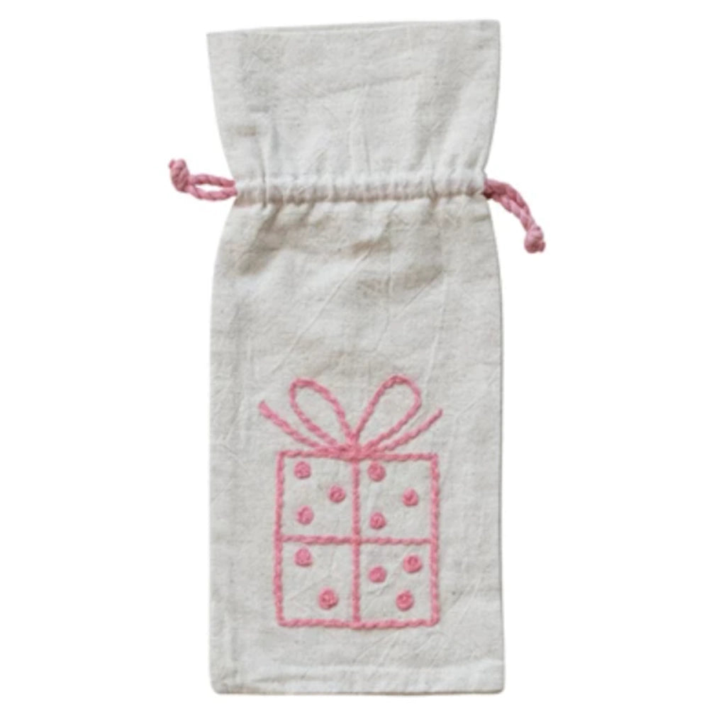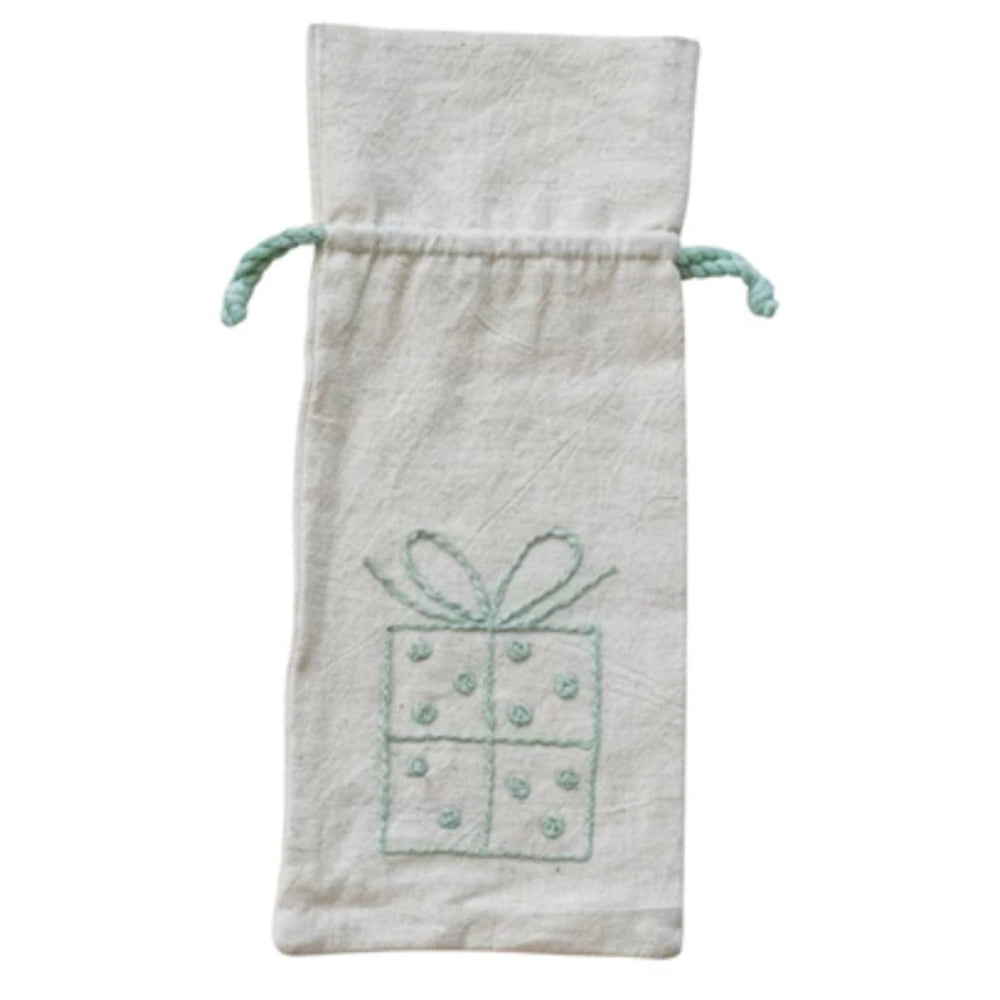 Each fabric bag features a beautifully embroidered seasonal design and an easy-to-use drawstring closure, making it the perfect reusable and eco-friendly gift wrap for wine bottles, sparkling beverages, or gourmet treats.
