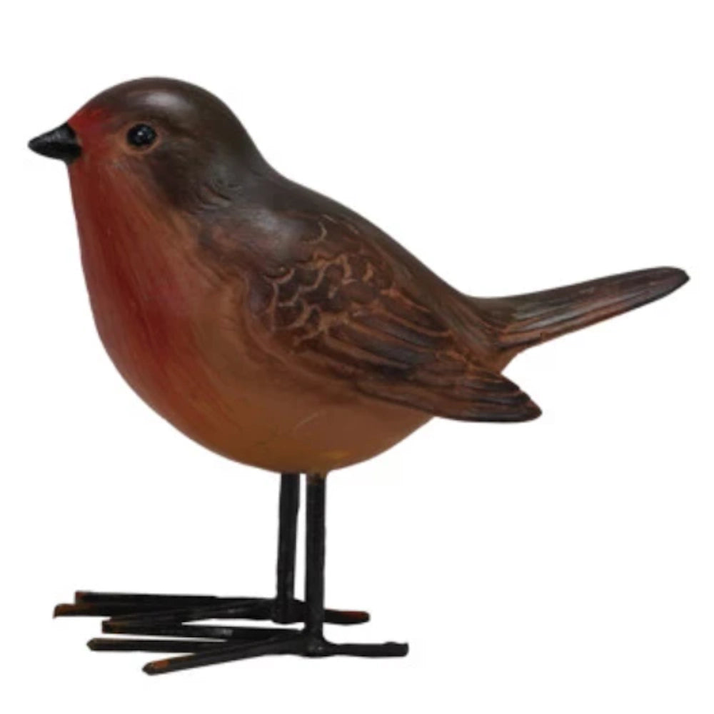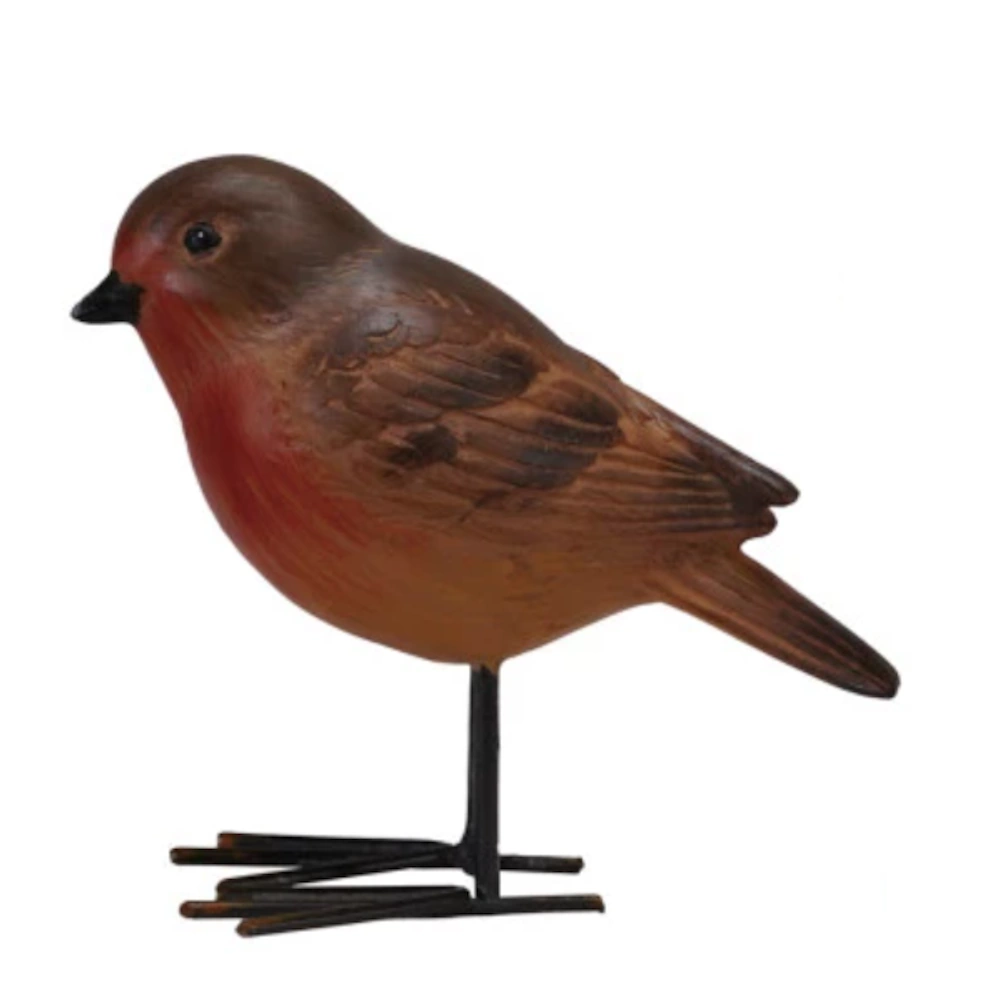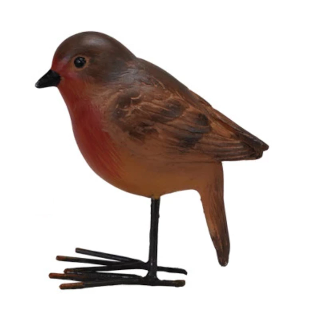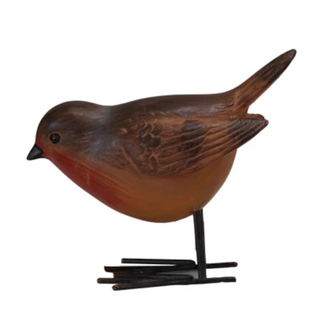Available in four unique styles, each bird figurine features a hand-painted resin body with sturdy metal legs for a whimsical, lifelike look.