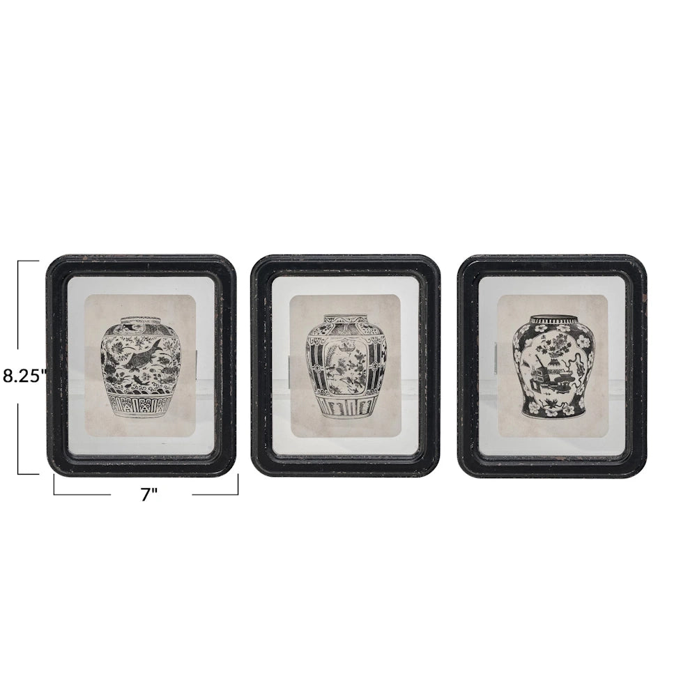 Available in three beautiful styles, each piece features a delicate vase design printed on glass and framed in natural wood for a soft, contemporary touch.