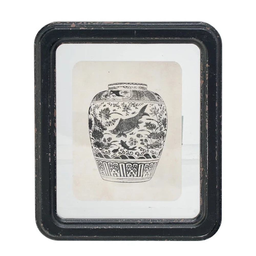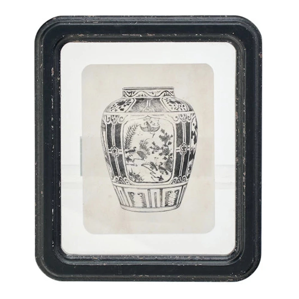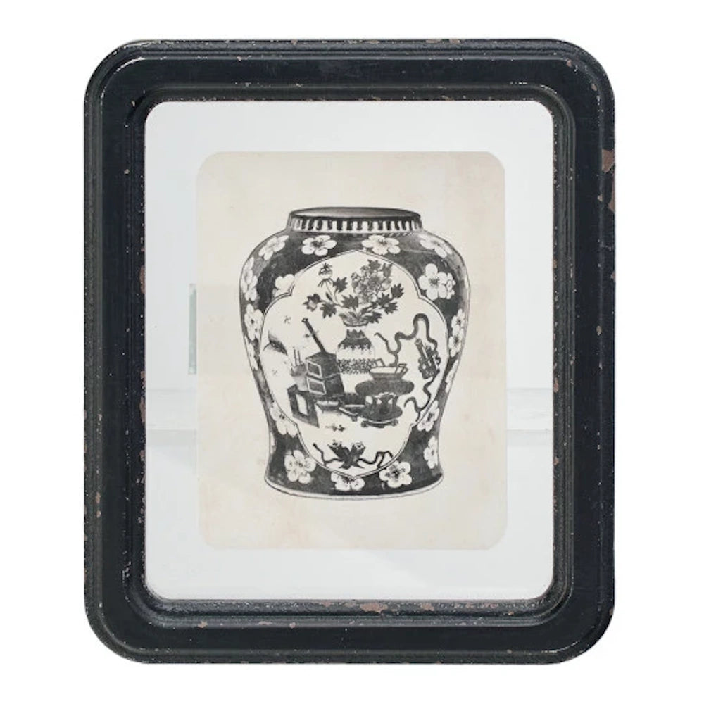 Wood Framed Glass Wall Decor with Floating Vase Print