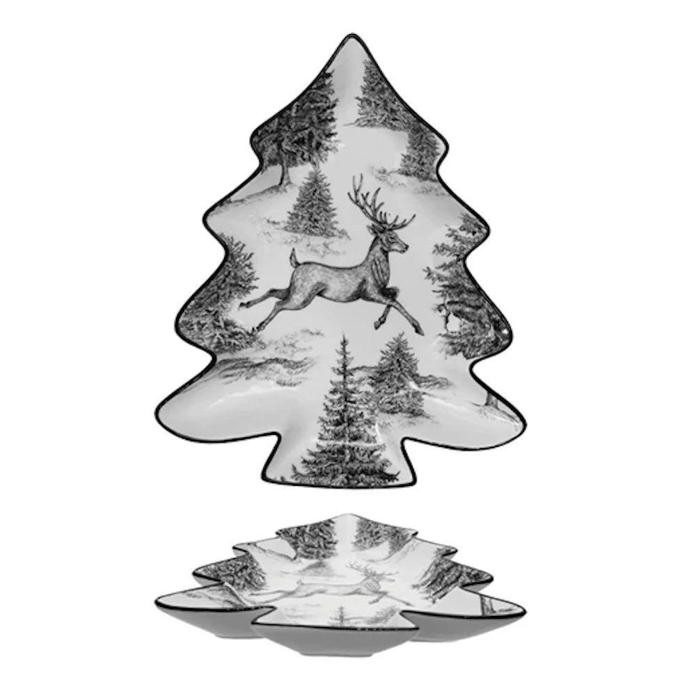 Ceramic Tree Shaped Plate with Woodland Deer Scene