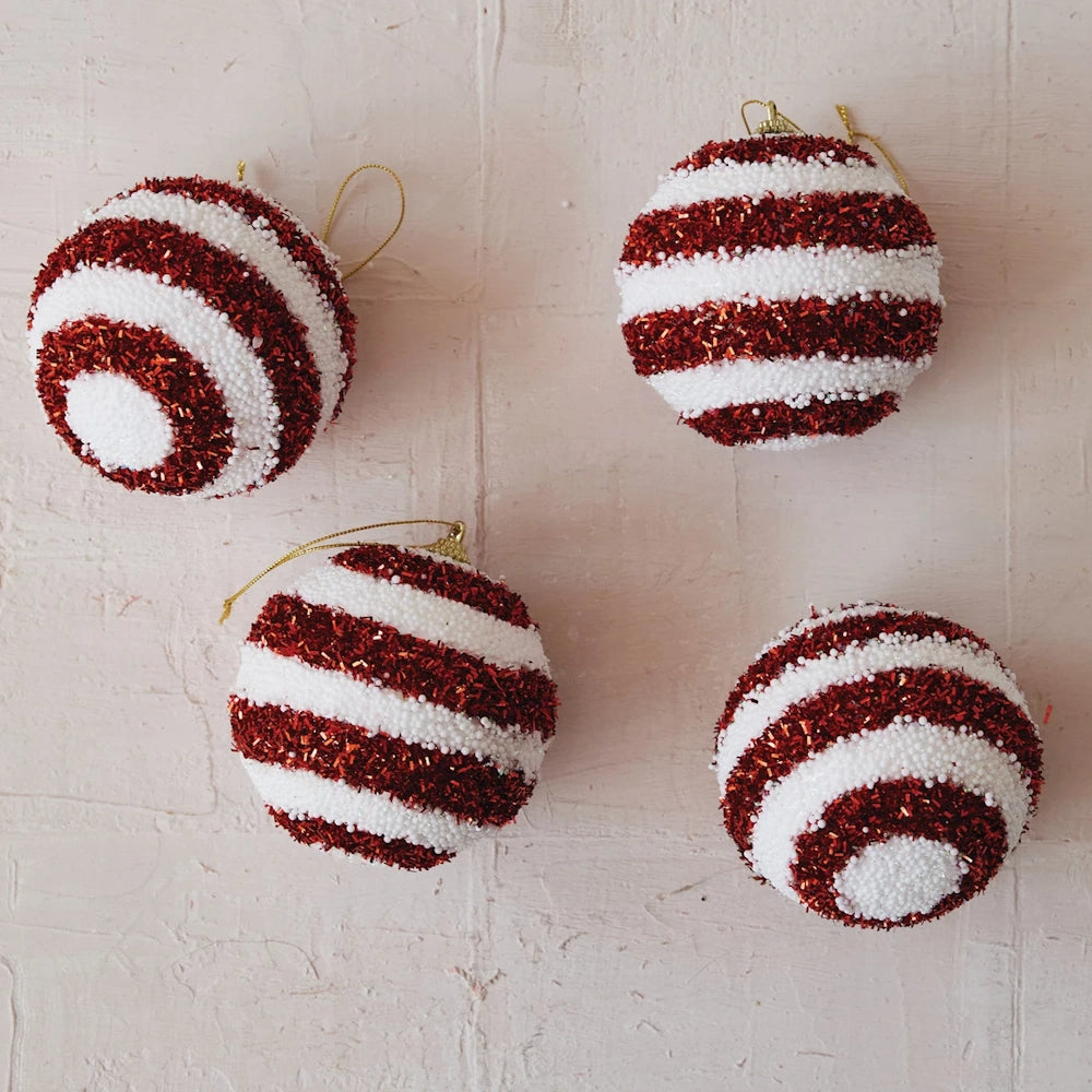 Foam Ball Striped Ornaments with Beads & Tinsel