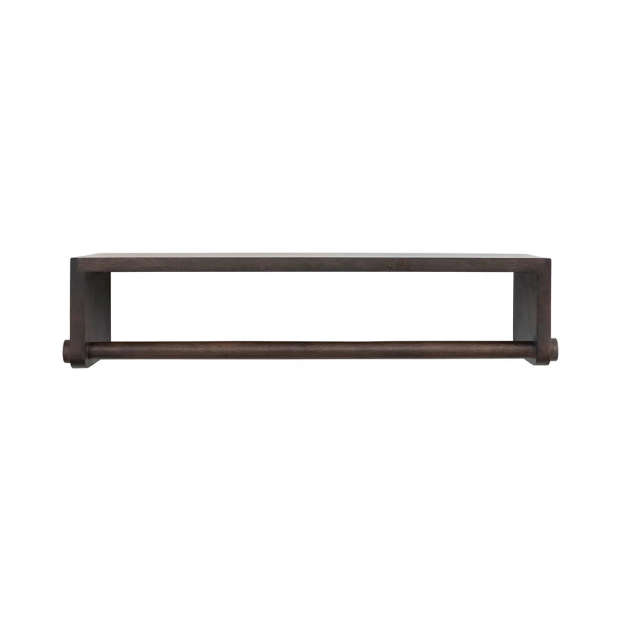 Mango Wood Wall Shelf with Rod, Espresso Finish