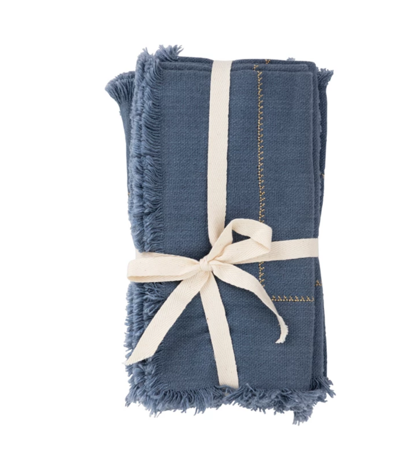 Woven Cotton Napkins with Gold Stitching Detail and Fringe, Set of 4