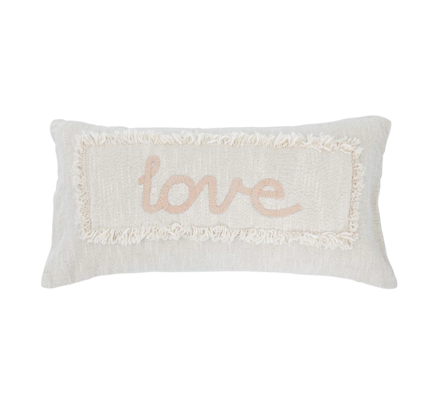 Add Cotton Embroidered Lumbar Pillow with Eyelash Fringe "Love" to the cart