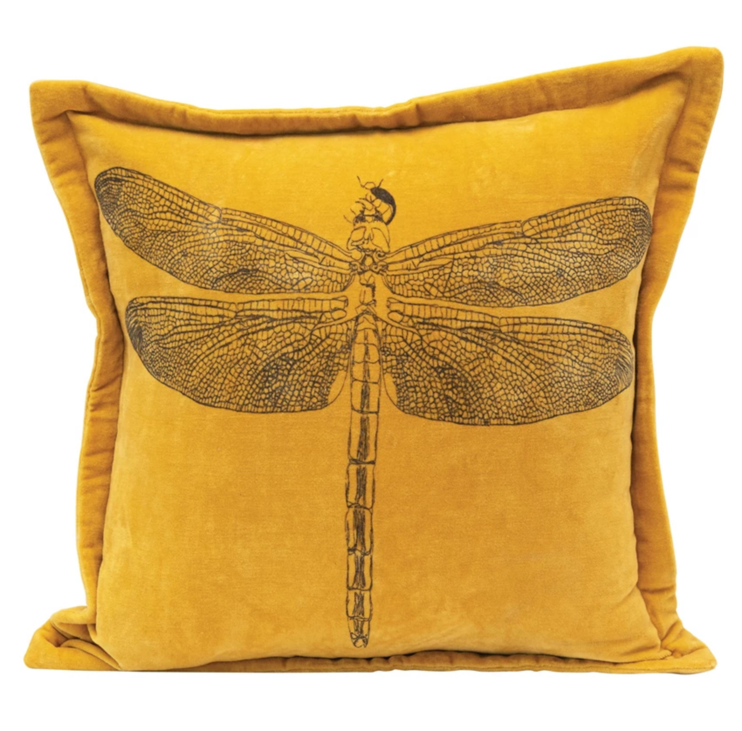 Cotton Velvet Pillow with Printed Dragonfly
