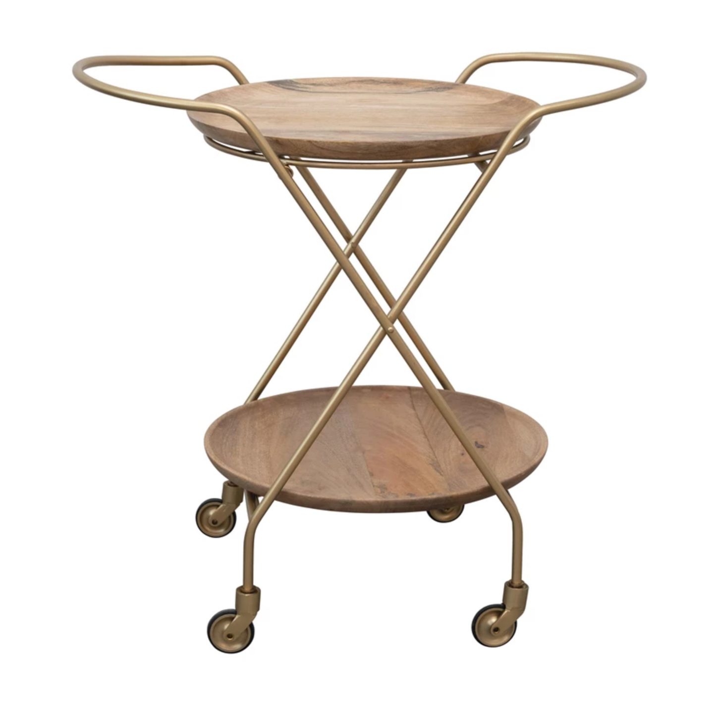 Metal and Mango Wood Two-Tier Bar Cart on Casters