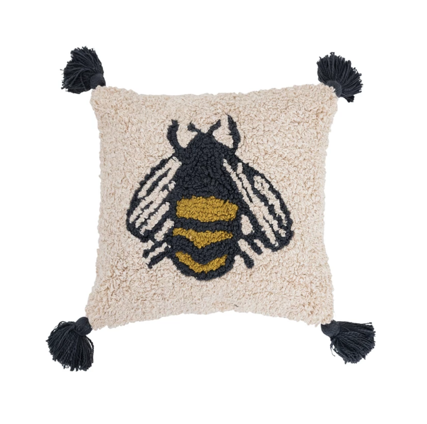 Add Cotton Punch Hook Pillow with Bee and Tassels to the cart