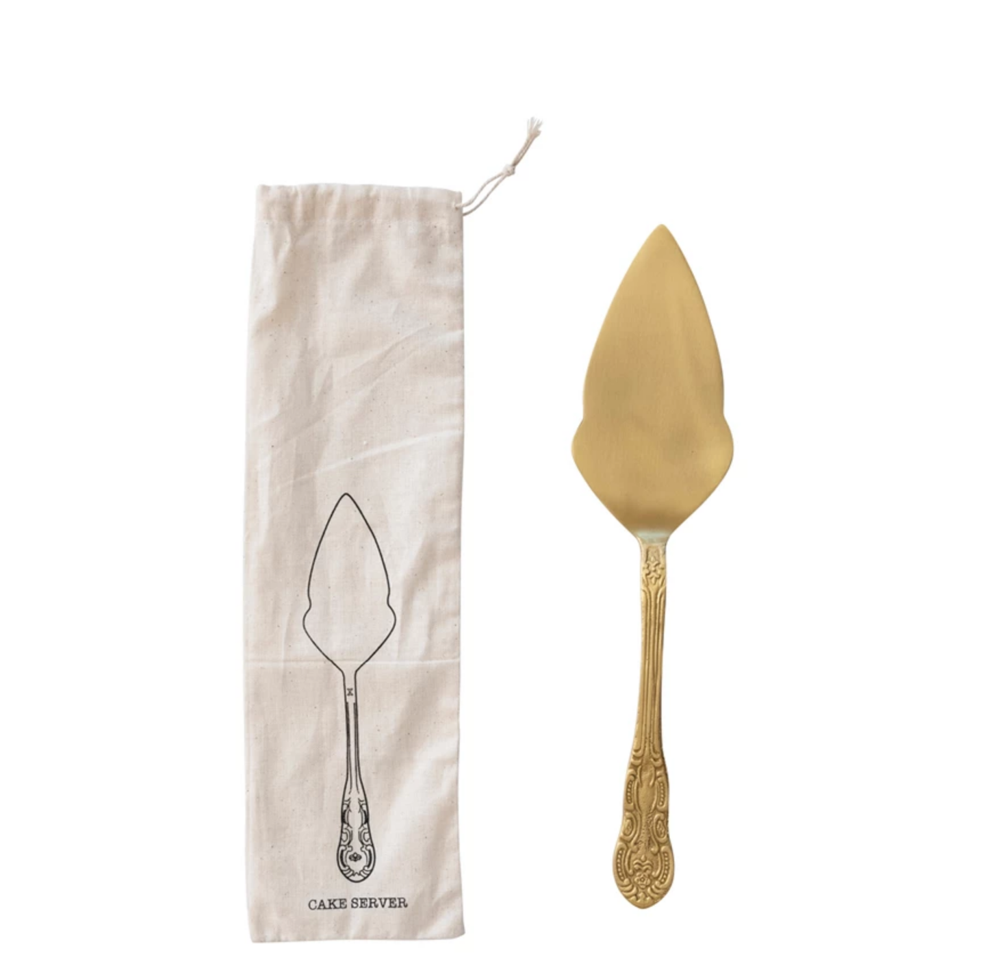 Brass Cake Server in Printed Drawstring Bag