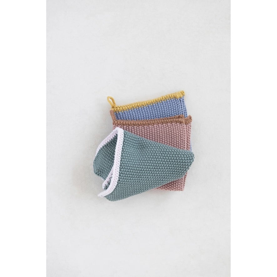 Set of 3 Square Cotton Knit Dish Cloths with Loops