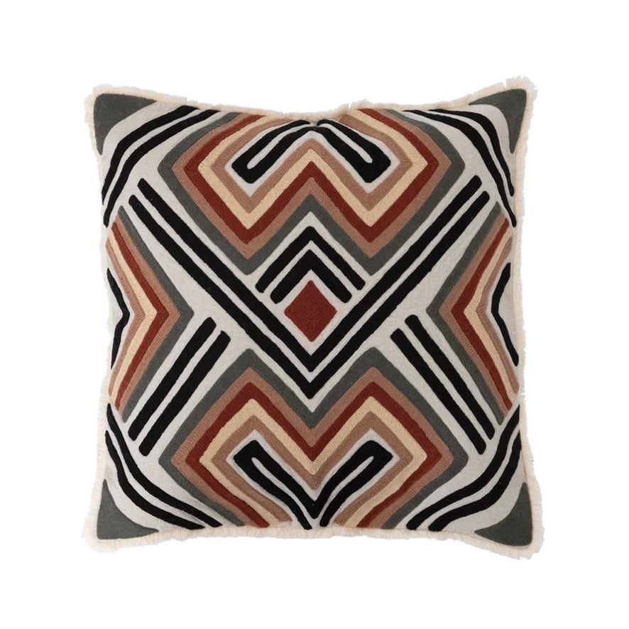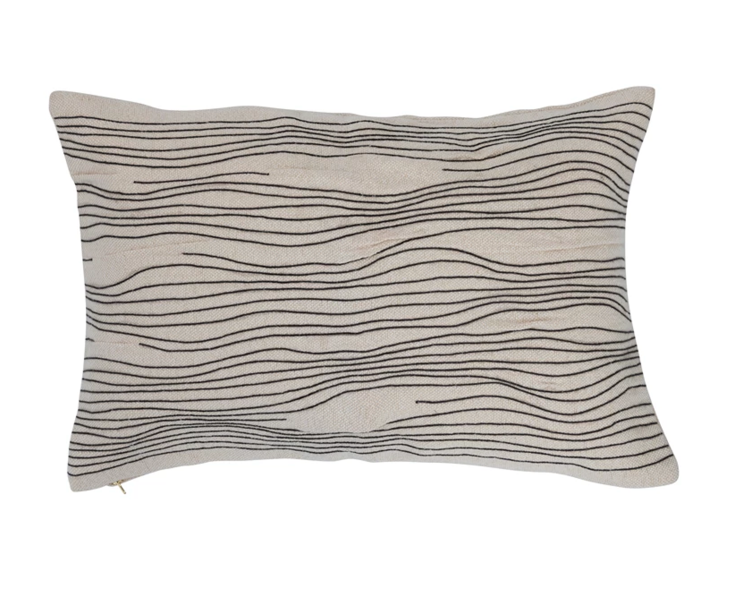 Cotton and Jute Lumbar Pillow with Embroidered Lines