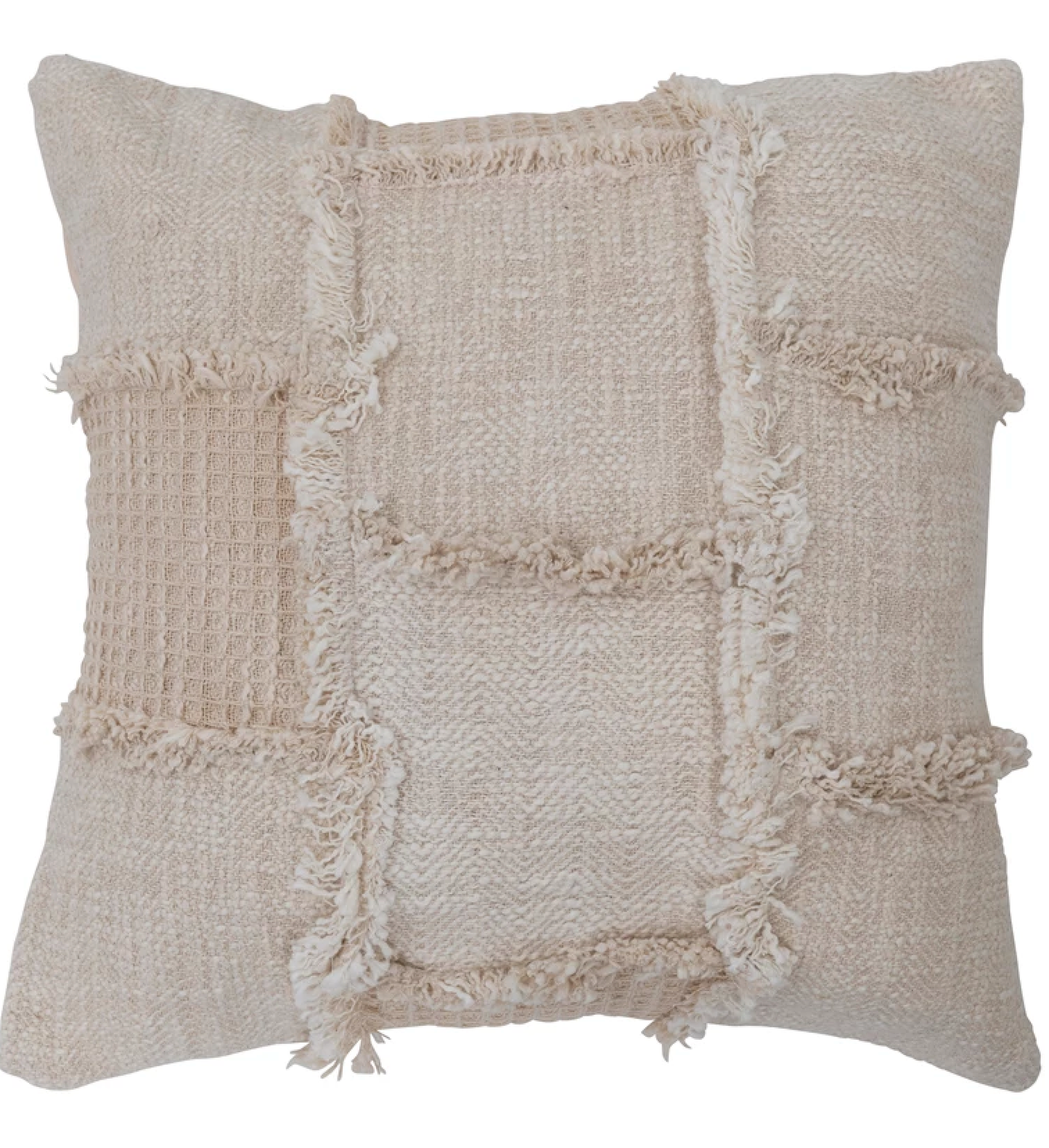 Woven Cotton and Wool Patchwork Pillow with Frayed Edges