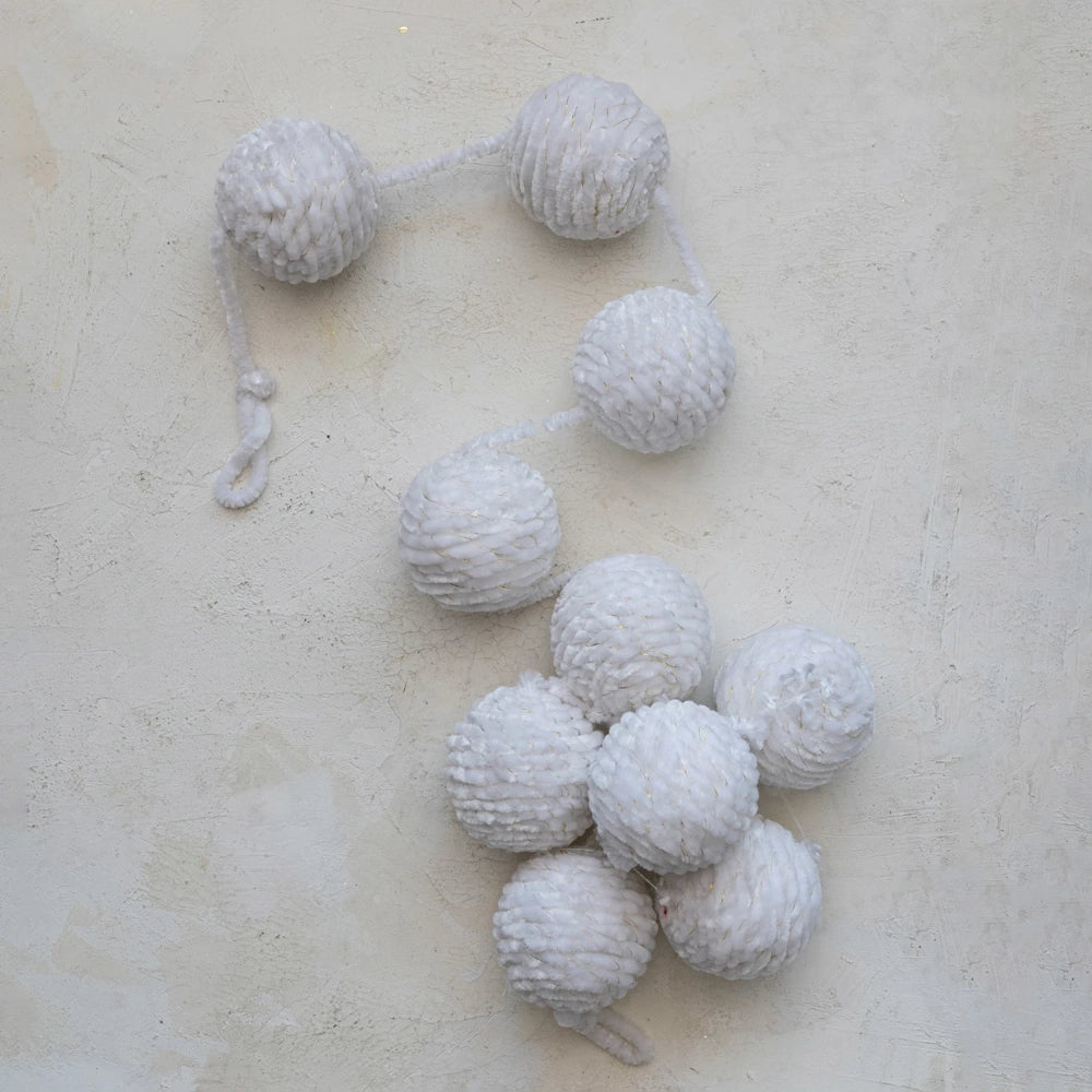Fabric Rope Ball Garland with Gold Metallic Thread