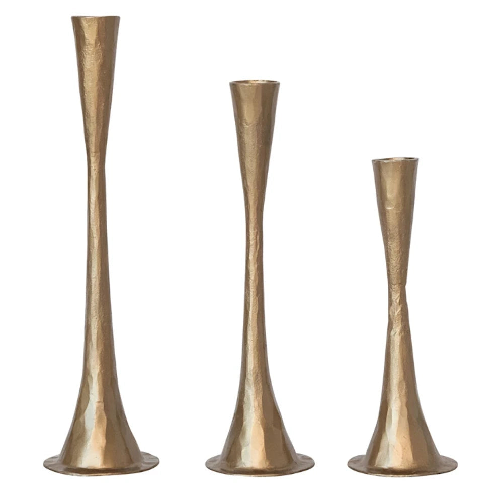 Set of 3 Antique Brass Finish Cast Iron Taper Holders