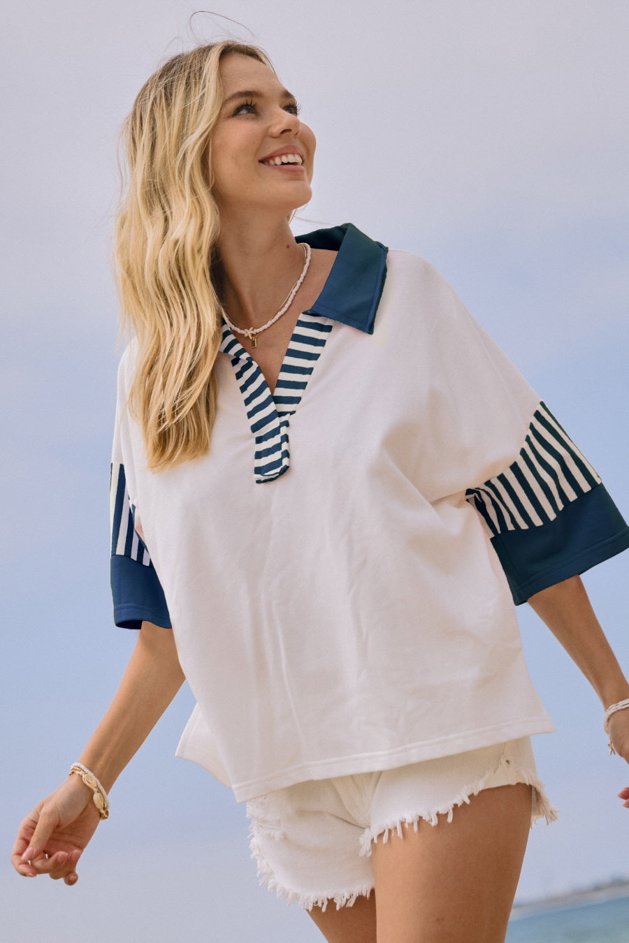 Color Block French Terry Collared Top