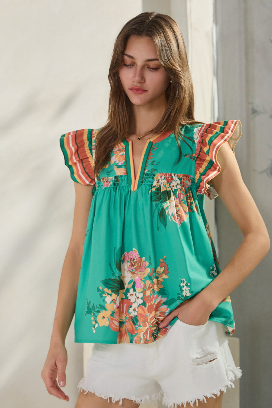 Floral Print V-Split Blouse