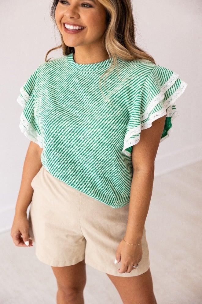 Green Knit Top Lace Trim