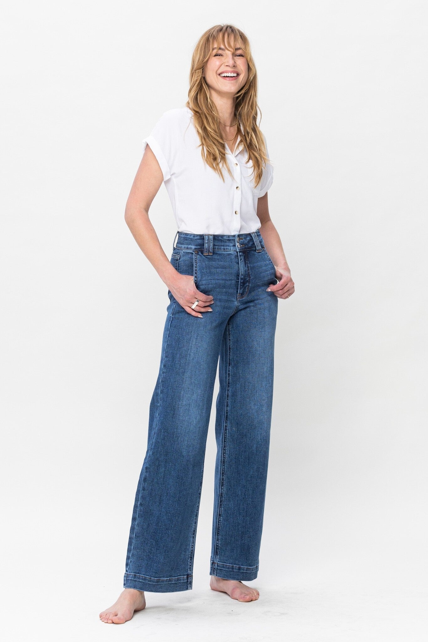 Elevate your wardrobe with these High Waist Wide Leg pants featuring a refined double-button detail. Designed to flatter your silhouette, the high waist enhances your natural shape while the wide leg offers effortless movement and a modern, elegant profile. Perfect for both professional settings and sophisticated casual outings, these pants combine comfort with timeless style.