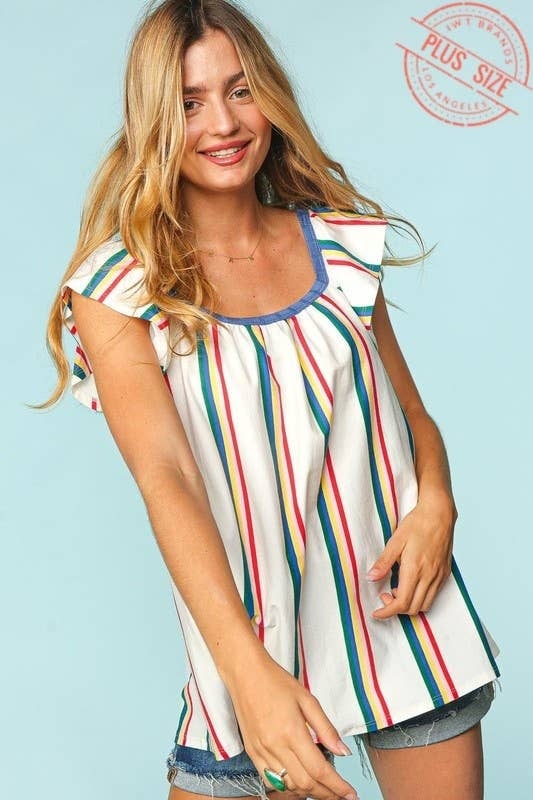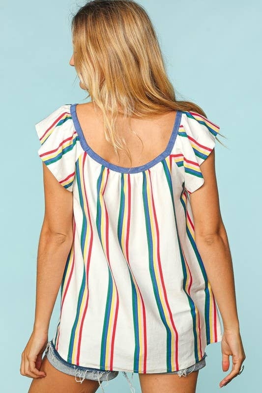 Multi Color Stripe Short Sleeve Top