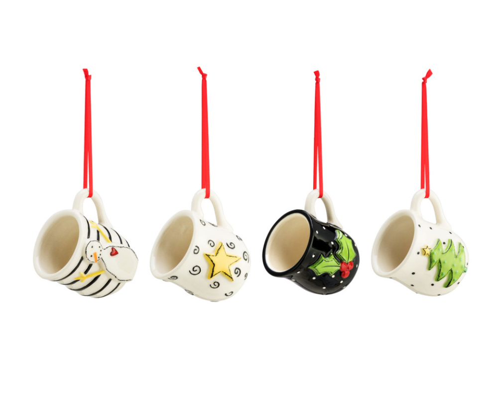 Christmas Patterned Coffee Mug Ornament- 4 Styles