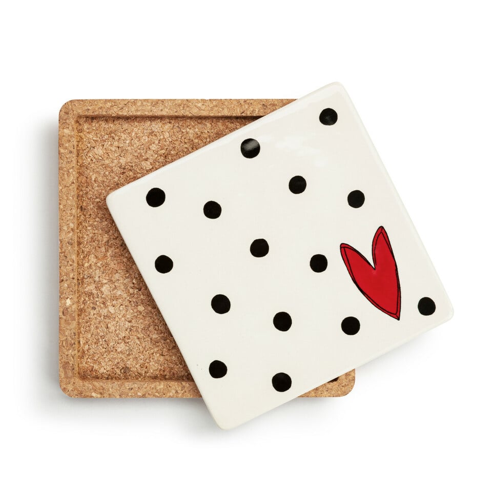 The stoneware, cork Black Dots Cork Base Trivet is the perfect kitchen accessory. This off-white serveware features artisan craftsmanship and is perfect for any housewarming entertaining. A useful and gorgeous gift for someone who loves to cook.
