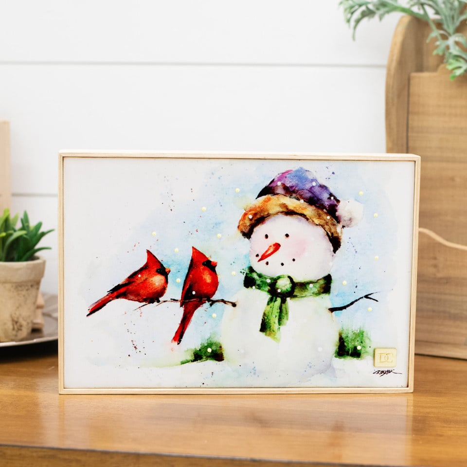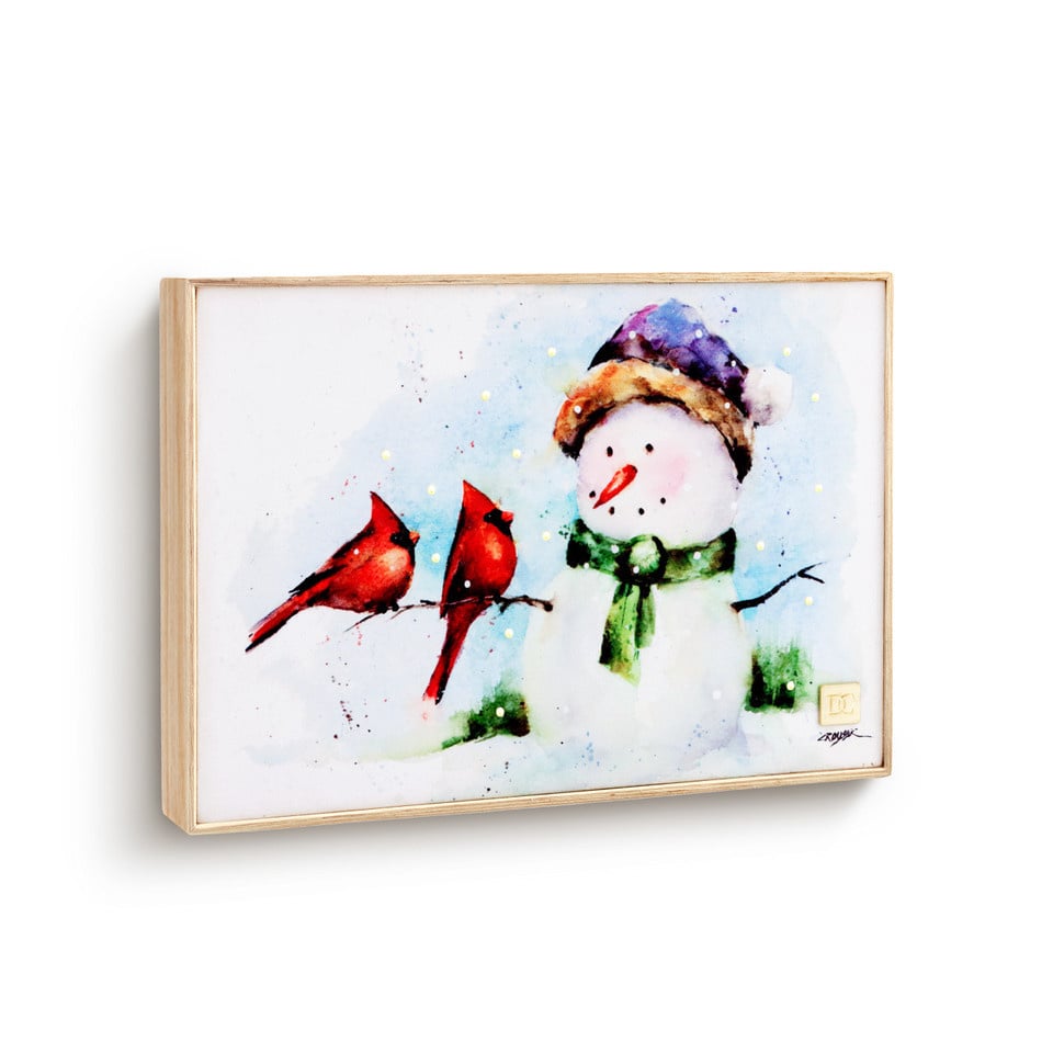 Lit Snowman and Cardinals Wall Art