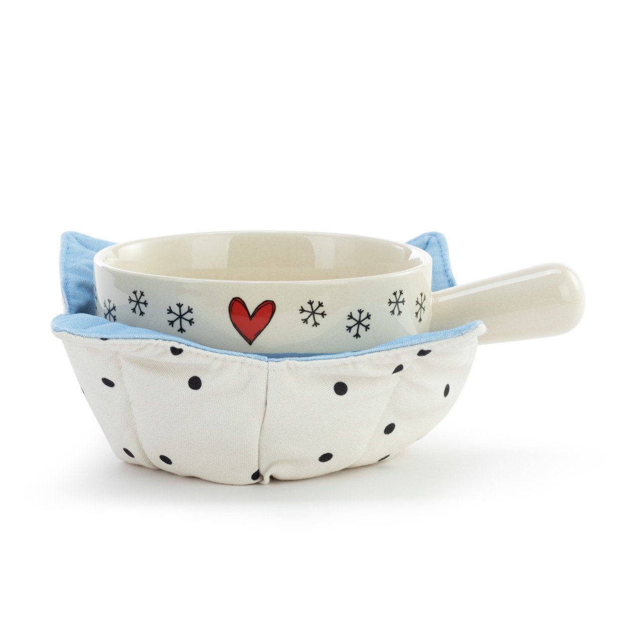 Snowman and Stripes Soup Crock and Bowl Cozy