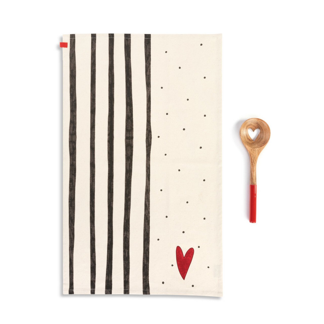 Sun & Stripes Kitchen Towel with Heart Spoon Set