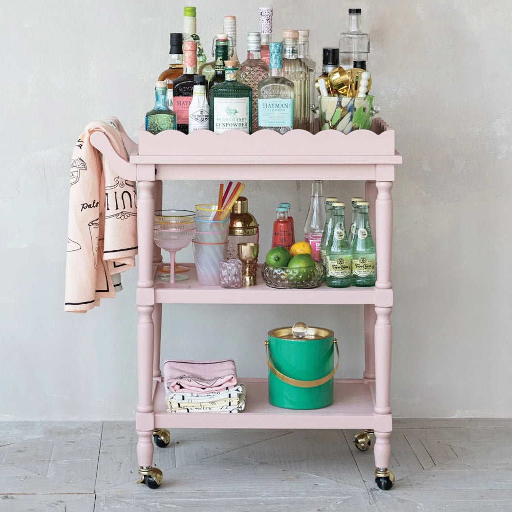 Wood Lacquered 3-Tier Bar Cart on Casters