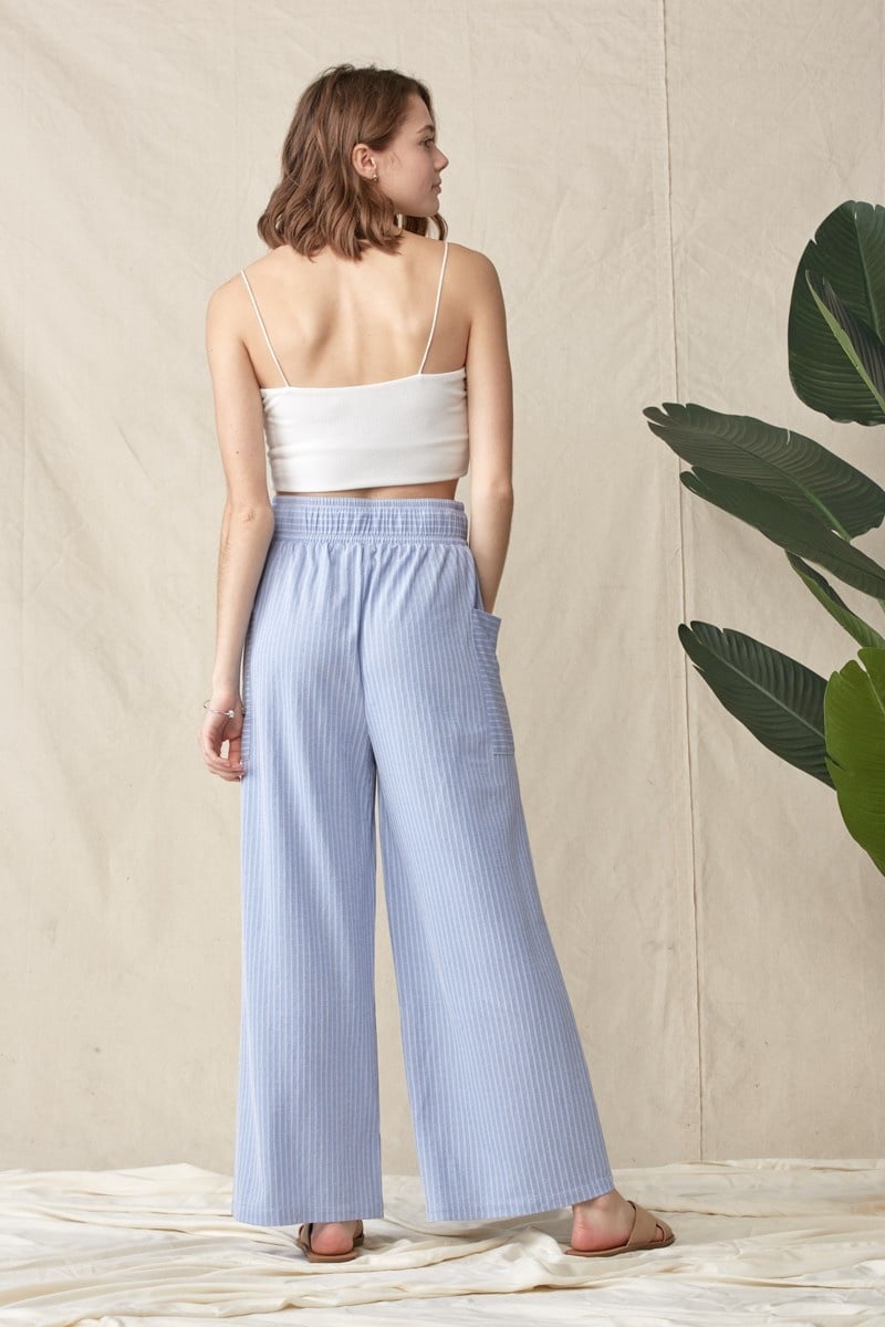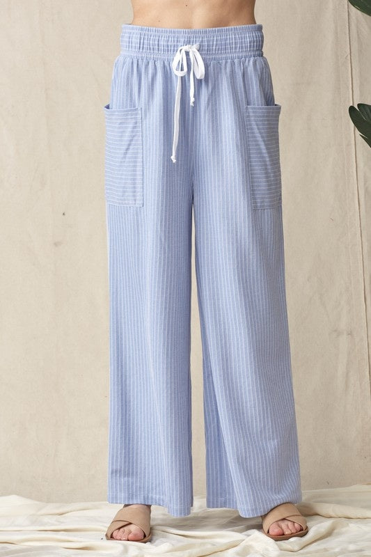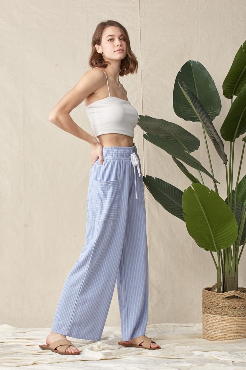 Elevate your wardrobe with these High Waist Stripe Wide Leg Pants, designed to blend comfort and sophistication. The flattering high waist cinches the silhouette, while the vertical stripes elongate the legs, creating a sleek, refined look. Crafted for effortless movement, the wide-leg cut adds a modern touch, perfect for both professional settings and chic casual outings. These pants offer a timeless style that seamlessly transitions from day to night.