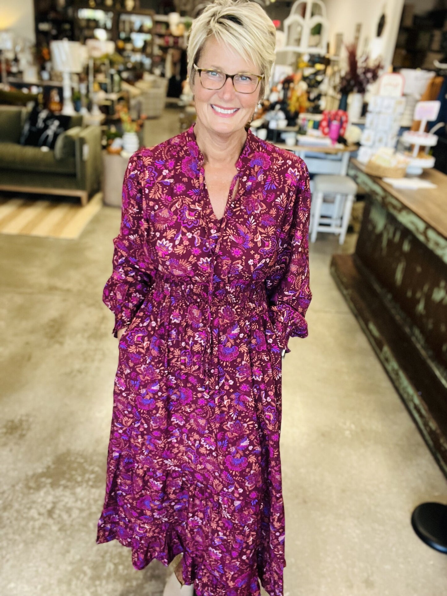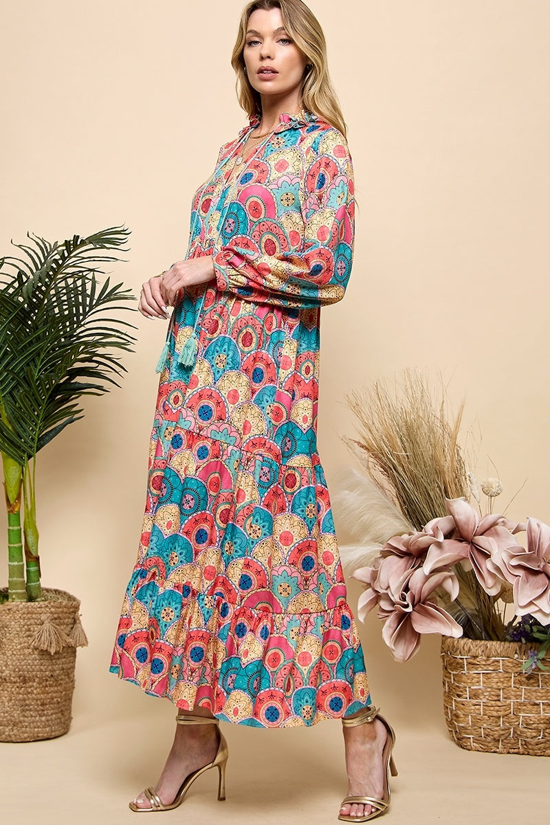 Print Long Sleeve Maxi Dress