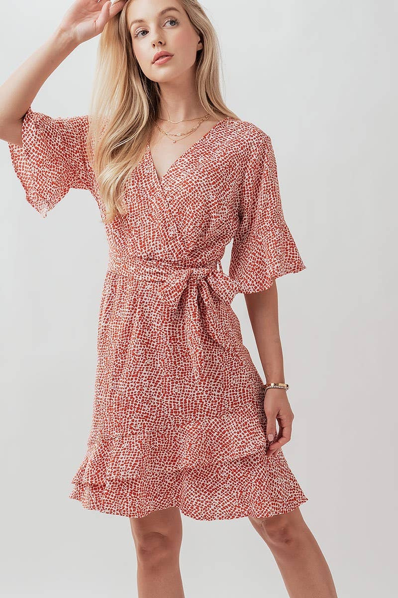 Giraffe Print Surplice Wrap Bell Sleeve Dress