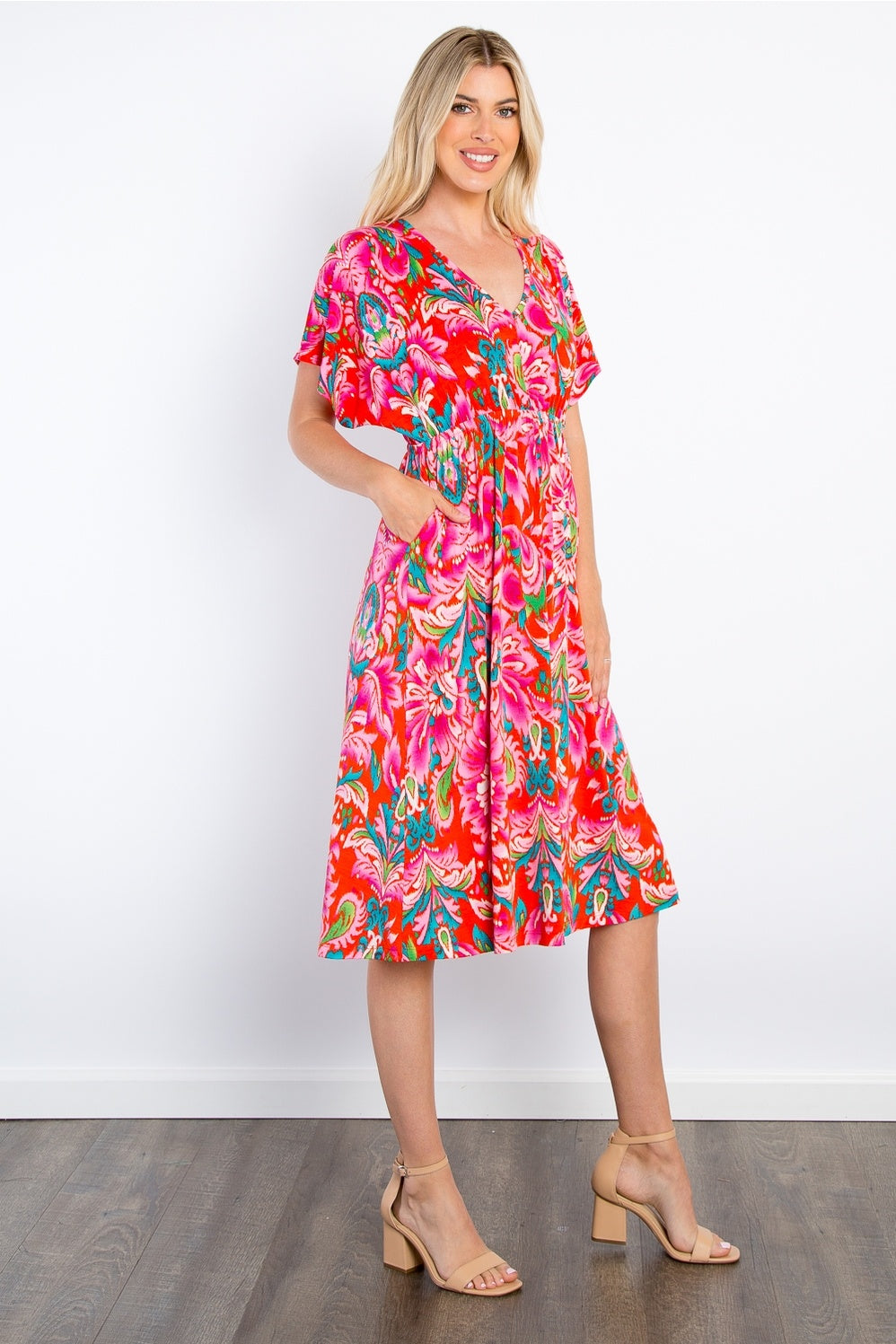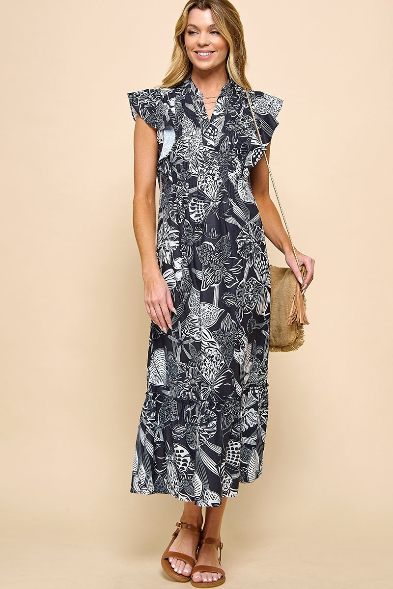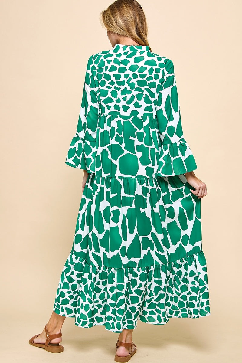 Print Flare Sleeve Midi Dress