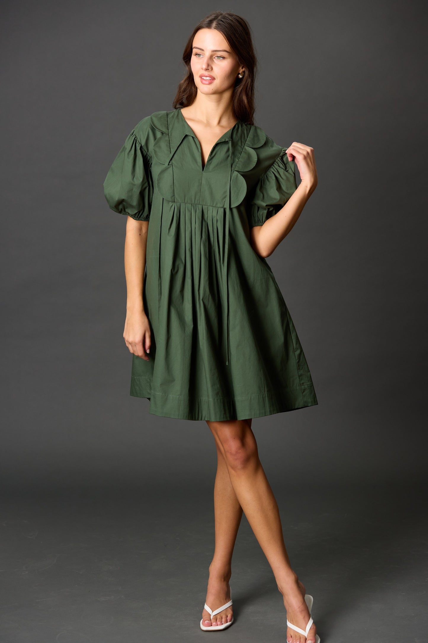 Poplin Scallop Trim Dress