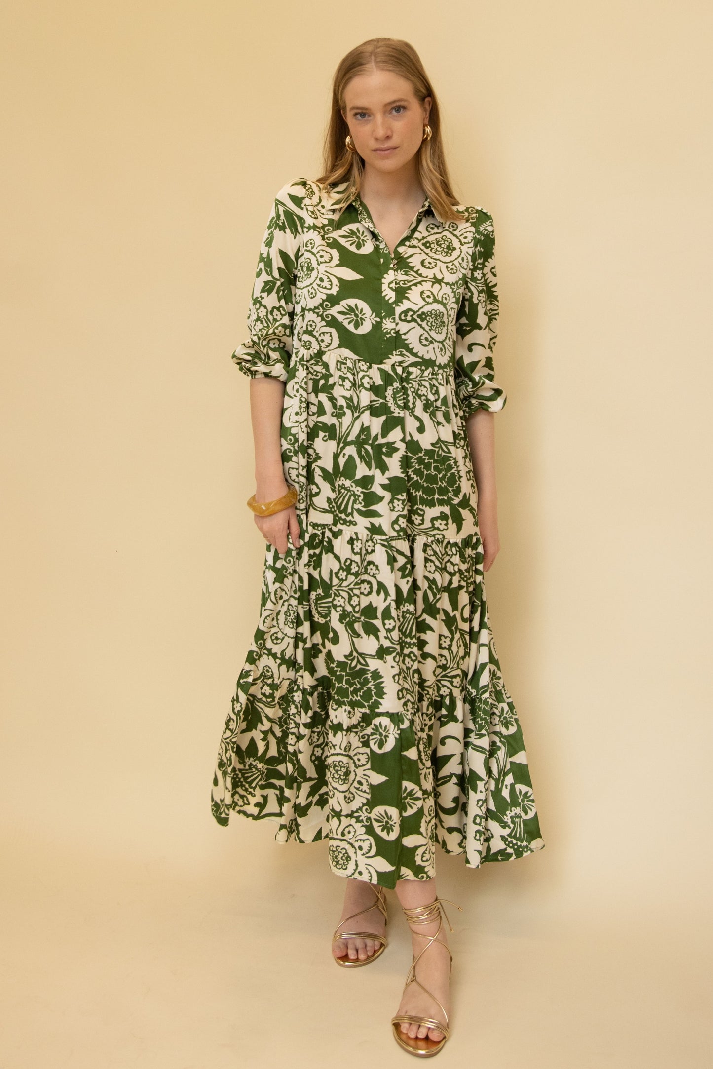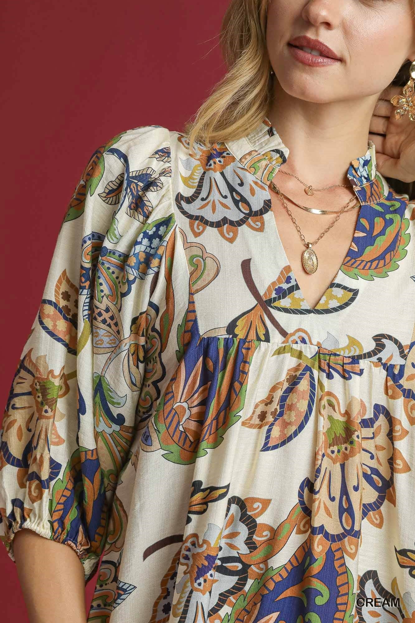 Print Three Quarter Puff Sleeve Maxi Dress