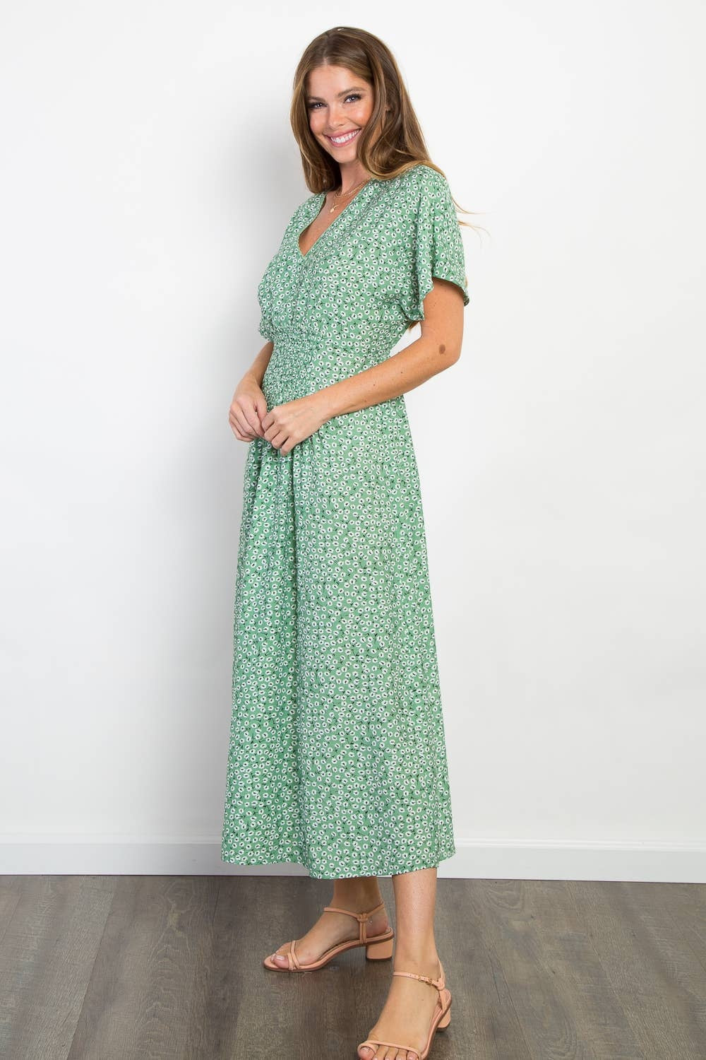 Front Shirred Print Woven Dress